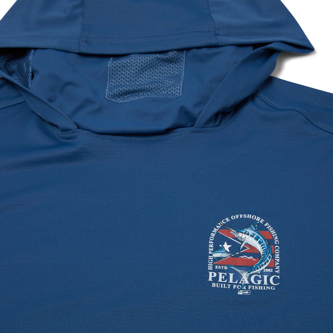 - Puerto Rico flag with blue marlin graphic chest hit and middle back