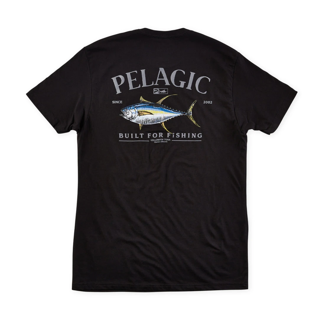 Go big or go home! Built on an ultra-comfortable premium cotton shirt, the Yellowfin Tuna Premium Tee features a large, bold yellowfin tuna graphic, encompassed by our heritage High Performance Offshore Fishing Gear motto and stamped with the PELAGIC logo.Â