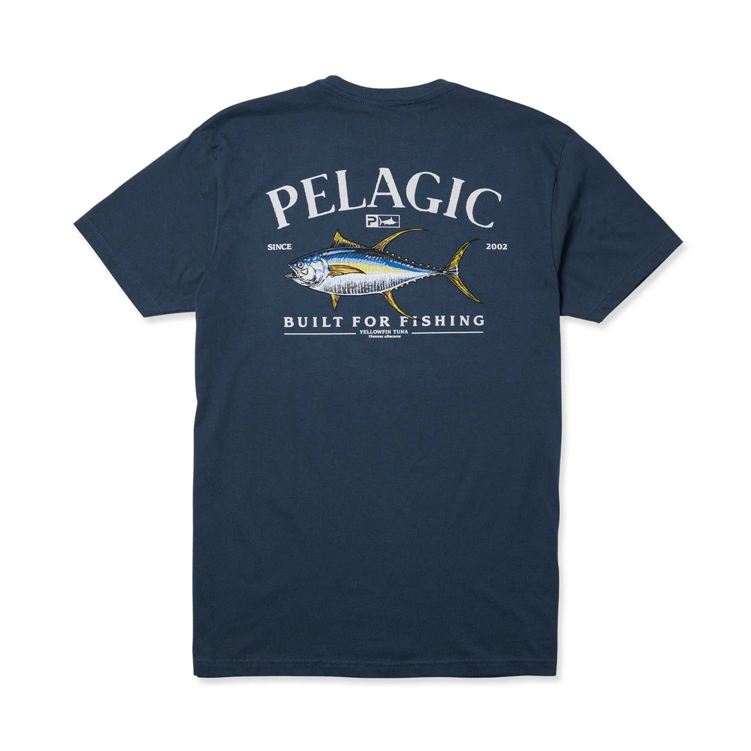 Go big or go home! Built on an ultra-comfortable premium cotton shirt, the Yellowfin Tuna Premium Tee features a large, bold yellowfin tuna graphic on the back and stamped with the PELAGIC logo.