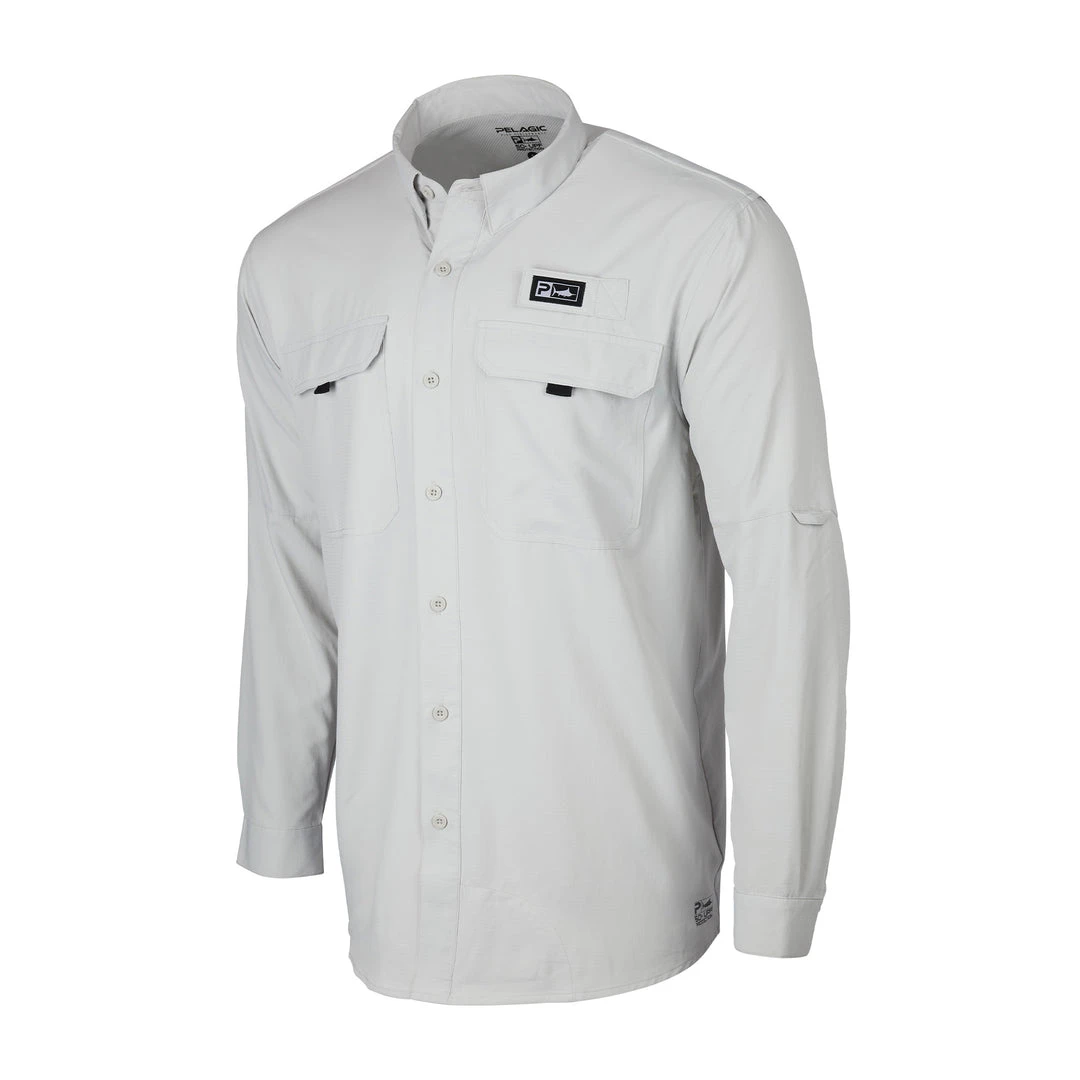 - Button down, collared fishing shirt