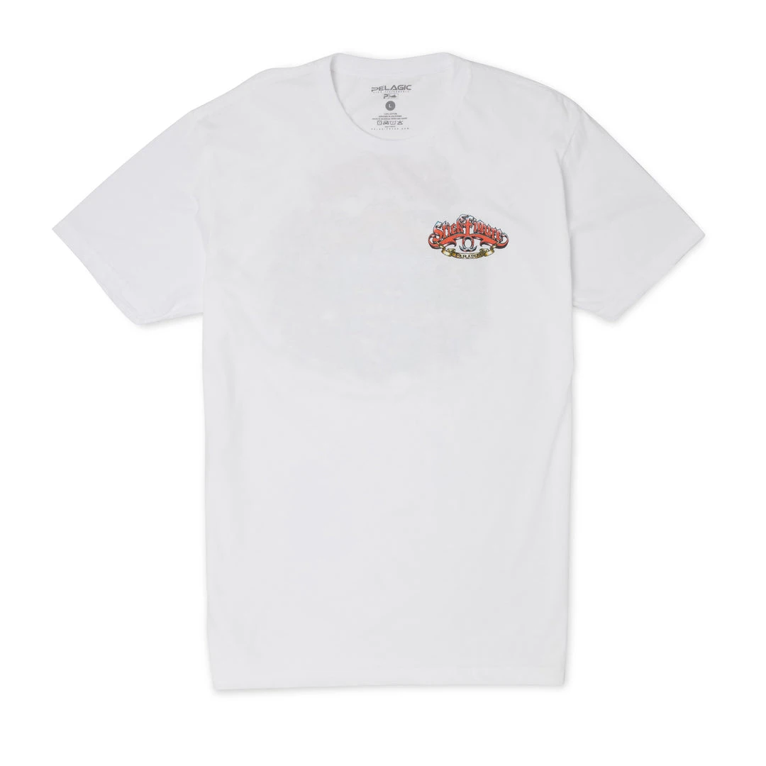 This limited-edition & ultra-comfy t-shirt features custom Pelagic x Stick Figure “Paradise” graphics with large print on back and front-left chest logo.