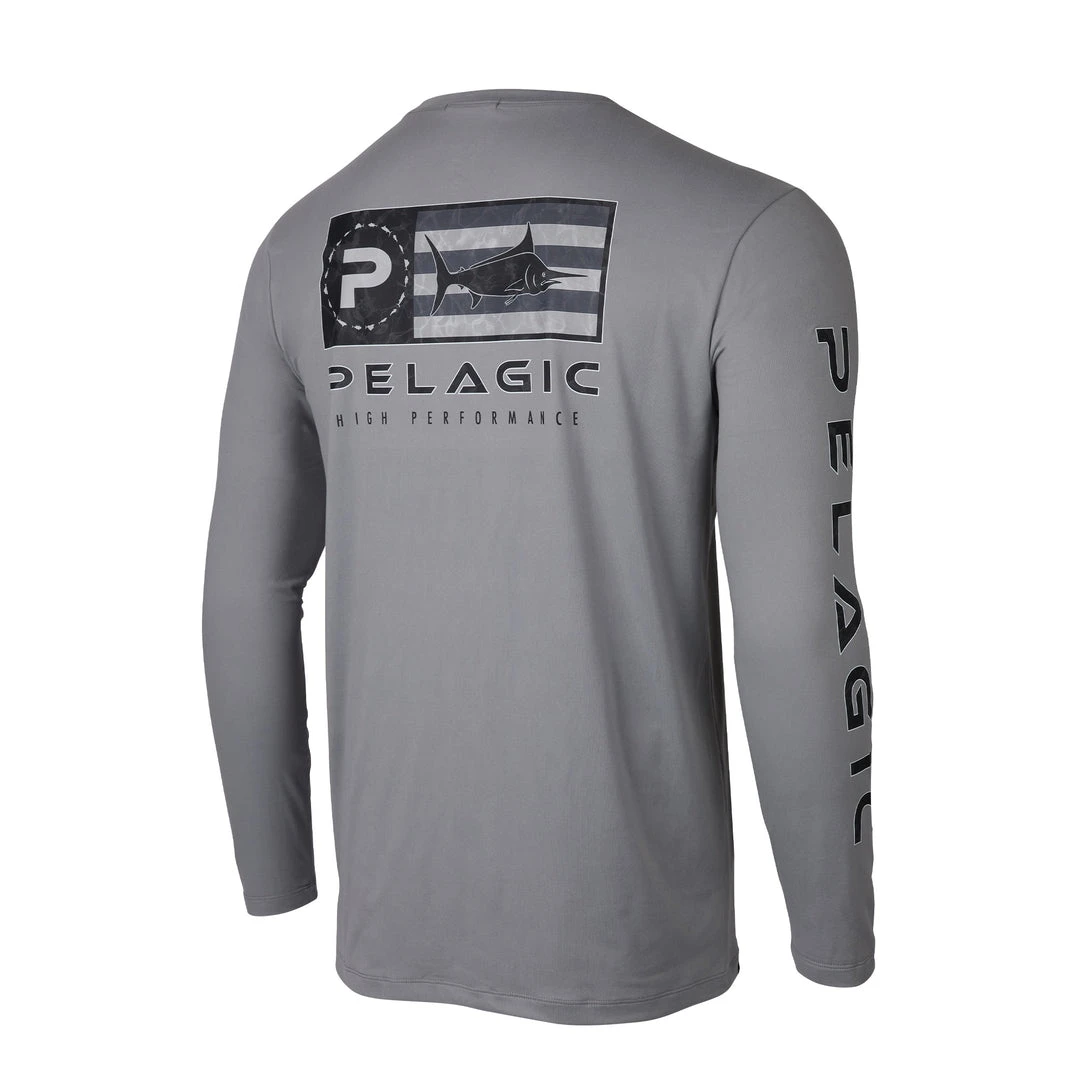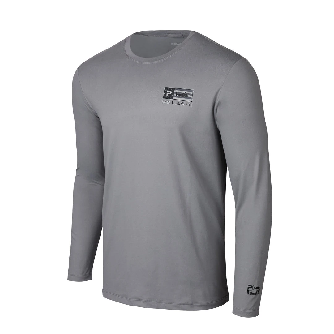 - Men’s long sleeve 50+ UPF performance shirt